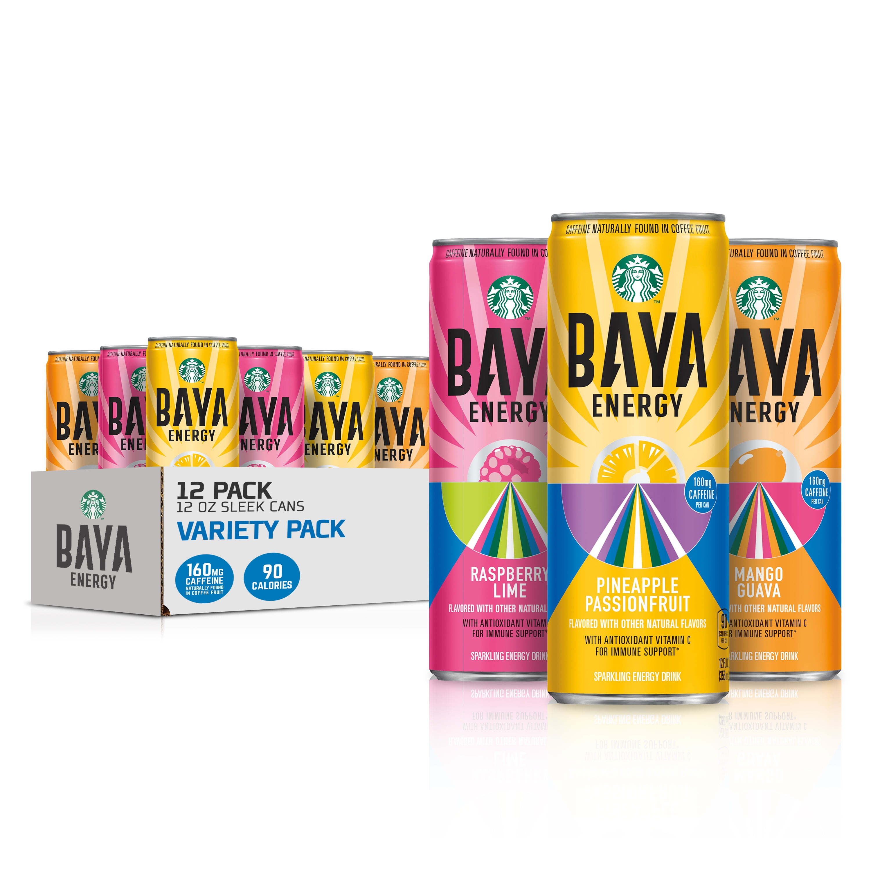 Starbucks Baya Energy 3 Flavor Variety Pack 12 Oz 12 Pack Sleek Cans Walmart Com